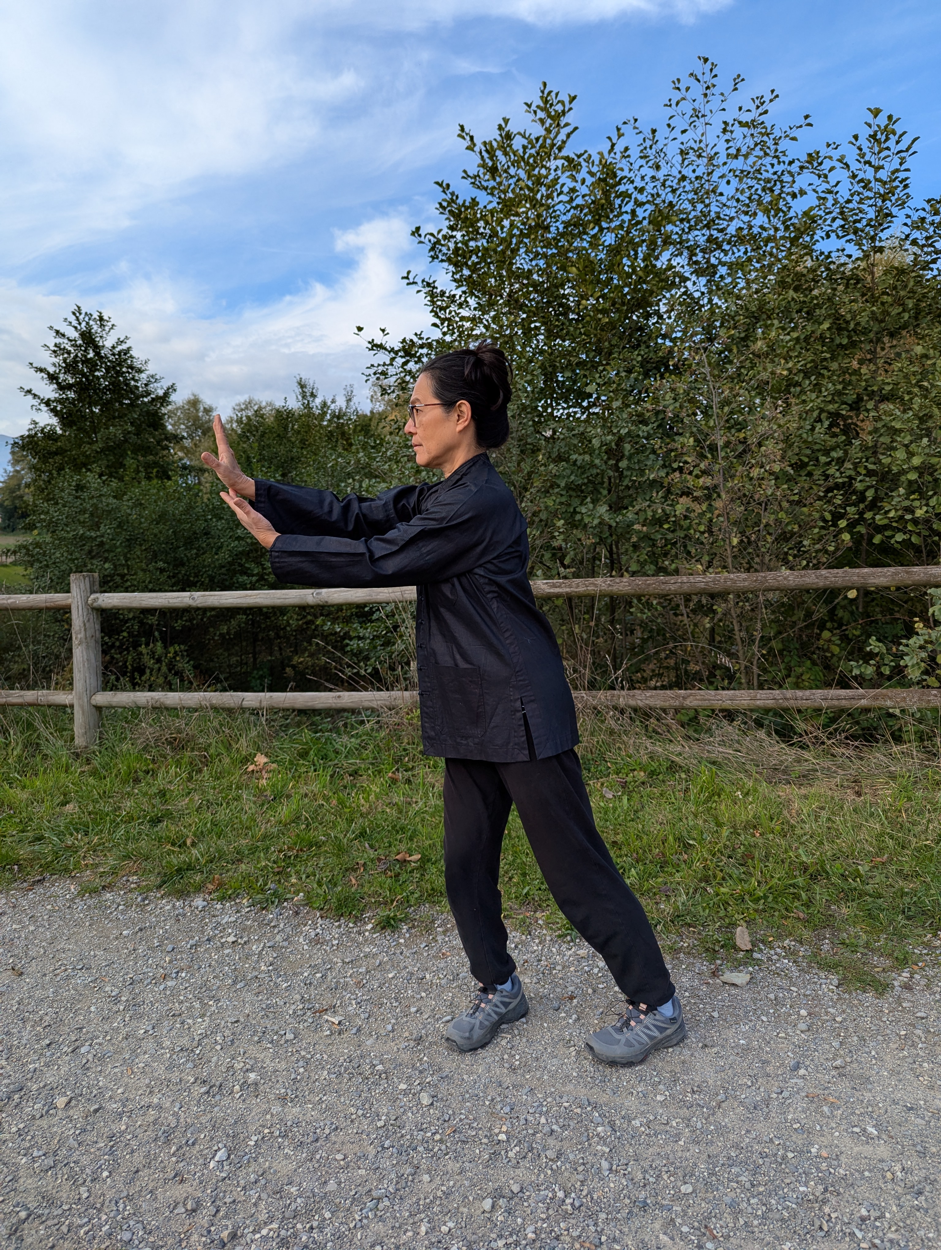 Qigong is a system of coordinated body postures and movement with breathing. With roots in Chinese medicine, Daoist philosophy and martial arts, qigong is traditionally viewed as a practice to cultivate and balance the body and mind. With its standing posture and movements synchronised with the breath, qigong can cultivate the body’s vital energy in order to maintain good health, and calmness and clarity of mind. Qigong can be practiced by itself or as a part of a Tai Chi Chuan training.